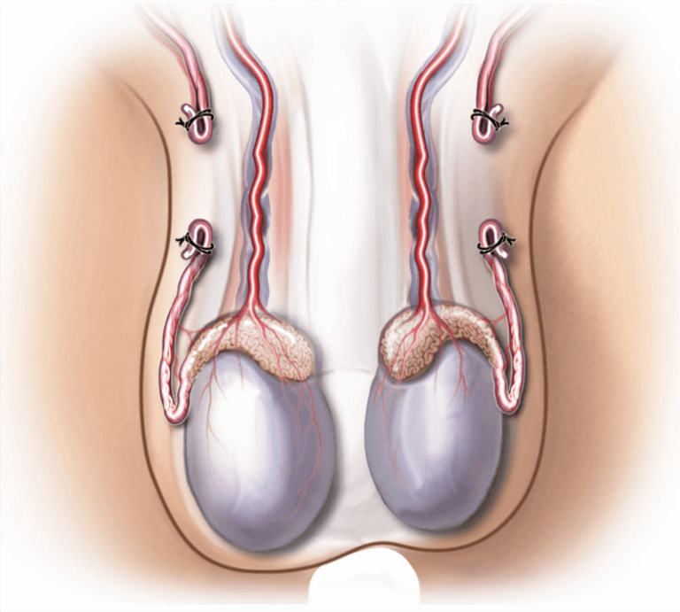 • سپس، جراح جهت یافتن مجاری وابران برش کوچکی در ناحیه بالایی کیسه بیضه ایجاد می کند.